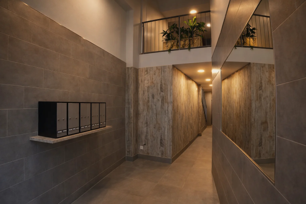 Actualització del vestíbul d’un edifici, combinant funcionalitat i estètica moderna.